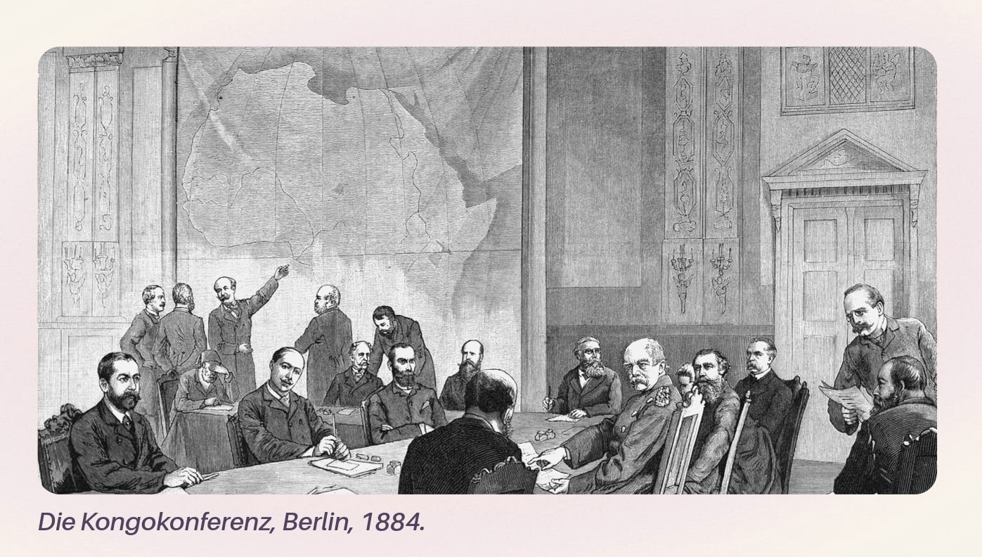 Die Kongokonferenz von 1884 in Berlin, ein Schlüsselmoment in der Geschichte des Kolonialismus, markierte den Beginn der Aufteilung Afrikas unter europäischen Mächten. Diese Konferenz konsolidierte nicht nur die physische, sondern auch die intellektuelle Aufteilung und Unterwerfung des Kontinents, indem sie das Fundament für eine lange Ära der Ausbeutung und Entfremdung legte.