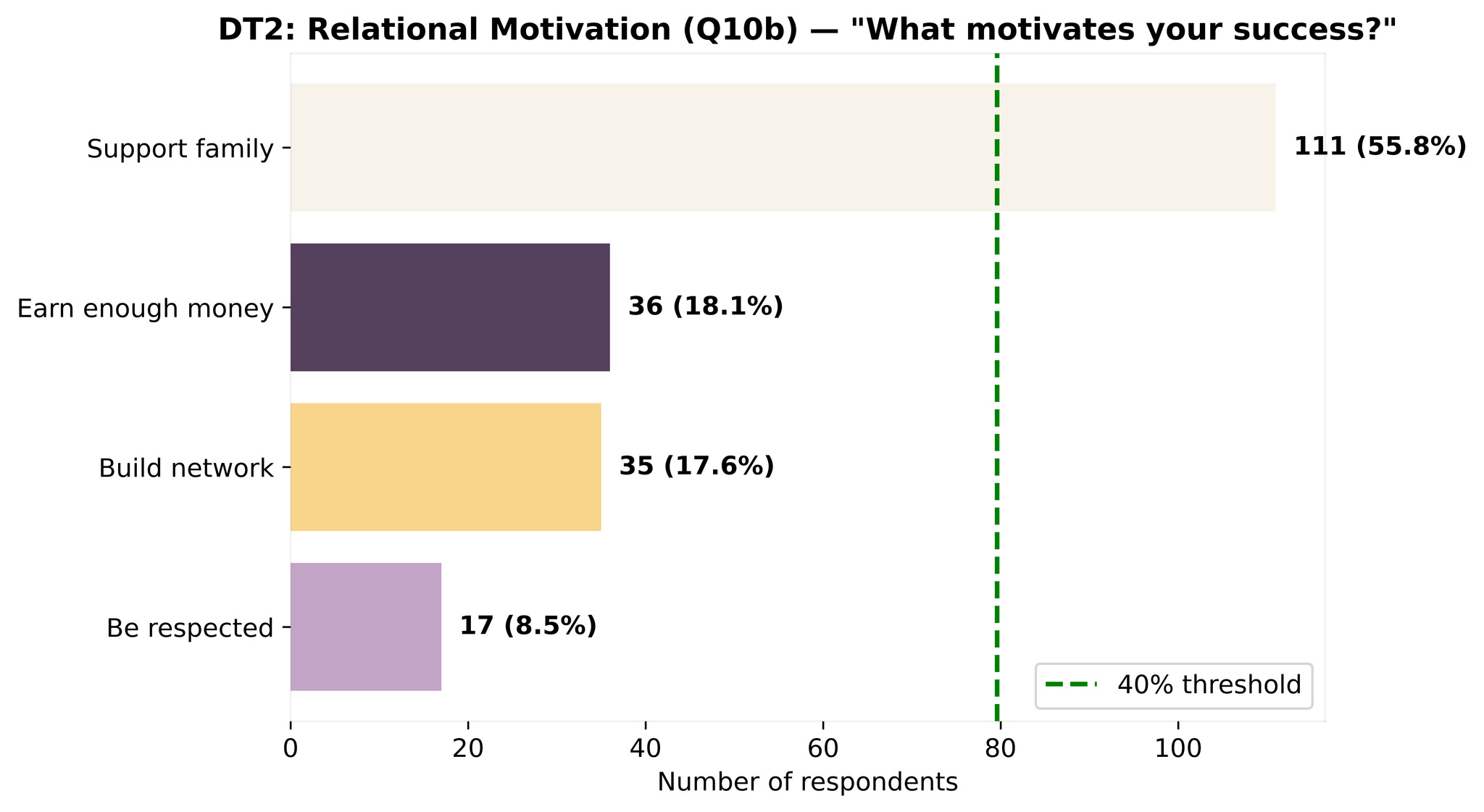 We asked these final year students what motivates them most to achieve their declared career goals . The options were supporting their family, earning enough money, building a network, being respected. 55.8% chose “support my family”. Second place, “earn enough money”, came in at only 18.1%!