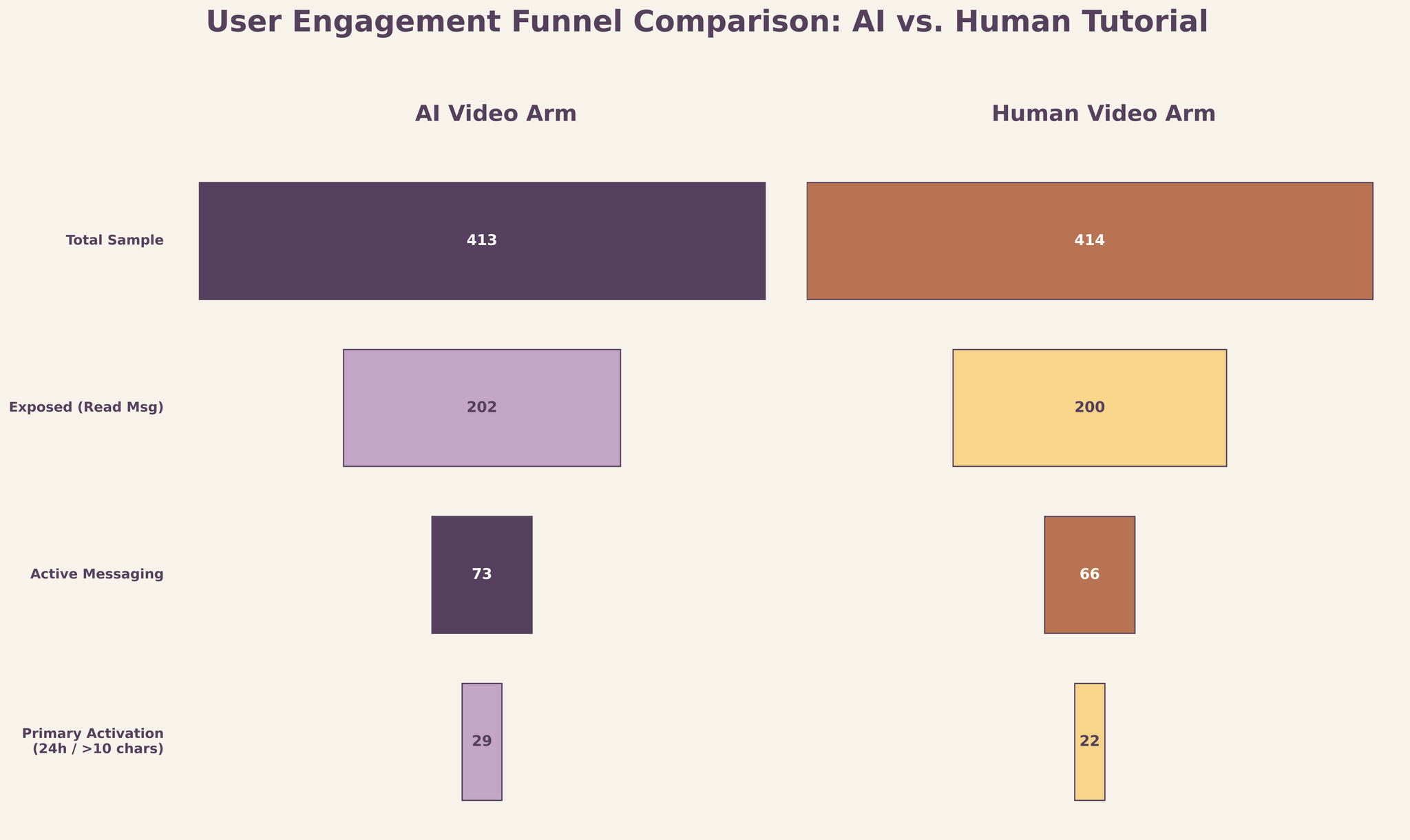 The sample was well balanced: 414 learners assigned to the human video, 413 to the AI video. Among those who actually read the onboarding message (200 and 202 respectively), the AI video group showed a higher rate of first key action within 24 hours: 14.4% versus 11.0%. That’s +3.4 percentage points, or a 31% relative increase.