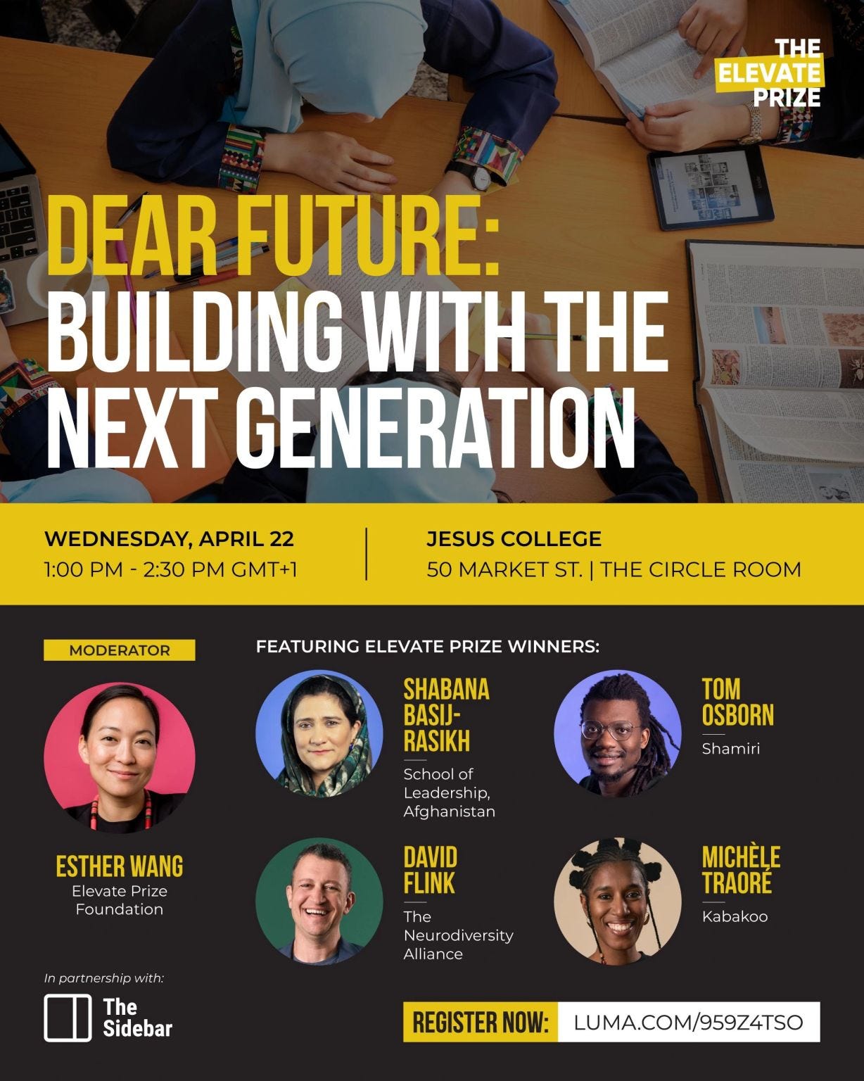 As an Elevate Prize Winner, Michèle is speaking at the Elevate Prize Foundation event “Dear Future: Building with the Next Generation” on Wednesday April 22.