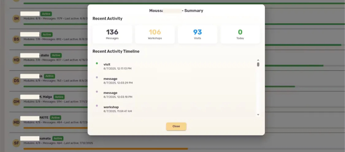 With our latest cohort, we’re adding a new layer to our operational toolkit: the Kabakoo Learning Dashboard, our unified interface for monitoring the entire learning ecosystem in real time.