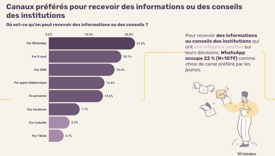 Furthermore, we have learned that trust is built on direct personal connections as Young Malians trust their parents, teachers, and close friends the most! This confirms our working hypothesis about including parents and relatives into our funnel as psycho-social support for learners. It also echoes our finding from last month about the relationship between having friends at Kabakoo and the decision to invest in Kabakoo training.